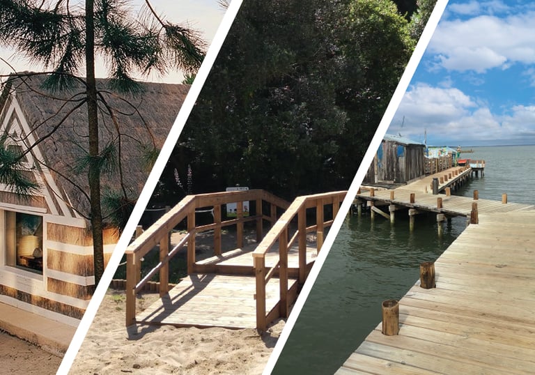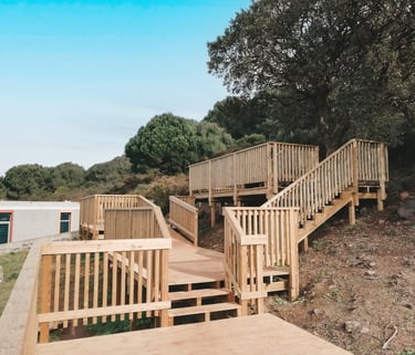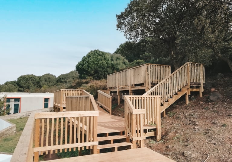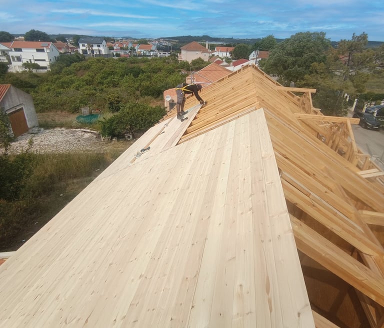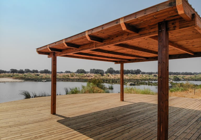Somos uma empresa especializada em carpintaria estrutural e construção em madeira para exteriores. Executamos estruturas exteriores em madeira, como pérgolas, decks, passadiços, telheiros e garagens, bem como trabalhos em casas em timber frame, coberturas, telhados e revestimentos de fachadas.